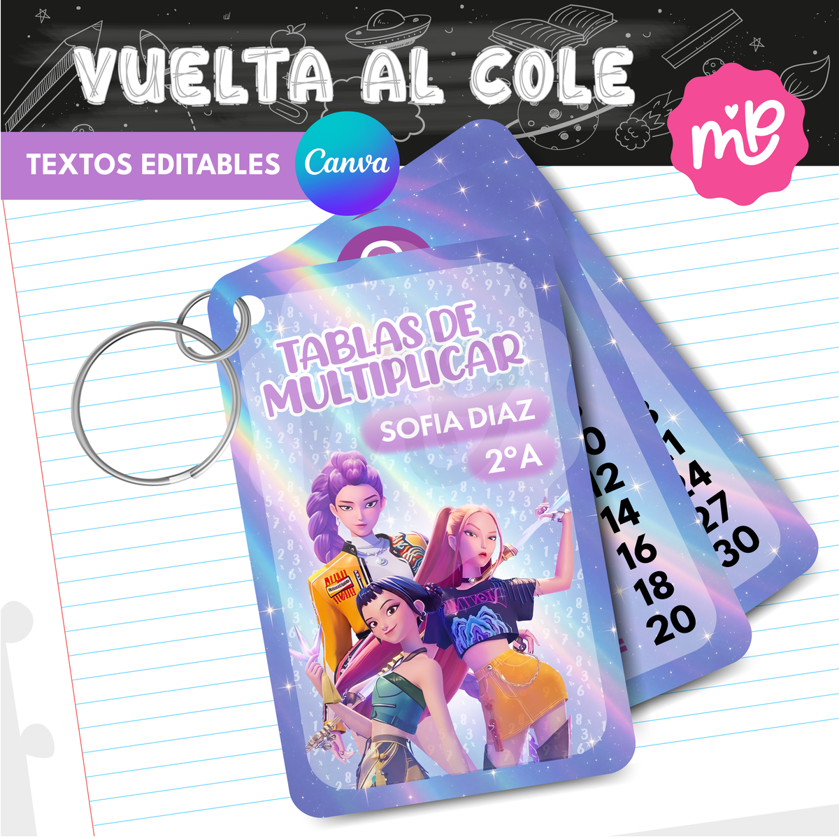 Diseño temático Huntrix, ideal para acompañar el aprendizaje y la práctica diaria de las tablas de multiplicar.